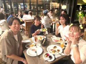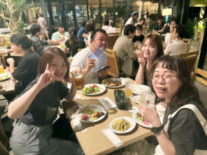 夜はシーサイドのおしゃれなレストランで宴会を開催し、笑い声の絶えない大盛り上がりのひとときに。こうした行事が、日頃のコミュニケーションをよりスムーズにし、風通しの良い職場づくりにつながっていると感じます。なお、やむを得ず参加できなかった社員には、食事券などのサポートも用意し、全員が気持ちよく楽しめるよう工夫もしています。