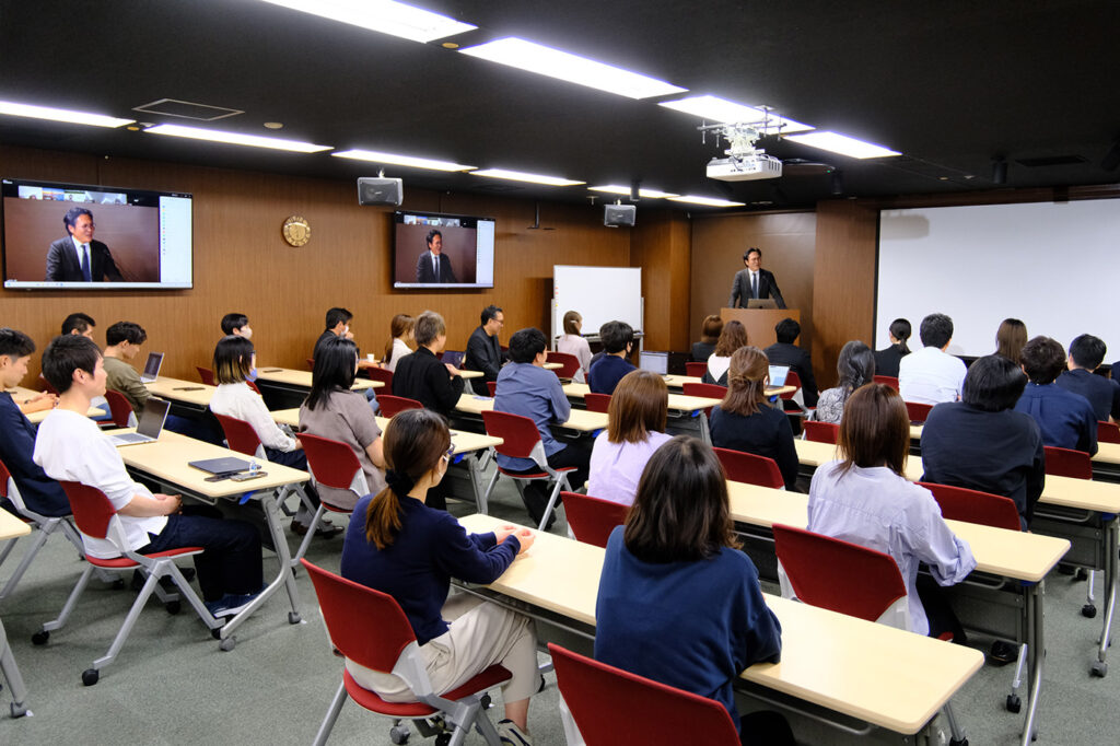 アートアベニューグループ2026年度内定式を行いました 2025年10月、アートアベニューグループの2026年度内定式を開催しました。毎年、新卒社員が司会や運営スタッフを担当しており、昨年は緊張の面持ちで内定式に参加していた2025年度新卒社員が、今年は進行役を務めました。その堂々とした姿に、先輩としての成長を感じ、とても頼もしく思いました。内定者のみなさんを迎えるために、グループ各社から代表者3名が挨拶を行います。まずは、代表取締役のマーク藤澤より歓迎の言葉が贈られ、続いて、2025年度新卒代表としてオーナーズエージェント コンサルティング事業部の酒井、そして取締役の片平が、それぞれ温かいメッセージを届けました。内定者のみなさんは緊張の面持ちながらも、一人ひとりがしっかりと自分の想いを言葉にし、社会人としての第一歩に向けた決意を語ってくれました。式のあとは、役員をまじえた食事会も開催され、リラックスした雰囲気の中で笑顔あふれるひとときを過ごしました。来春の入社に向けて、これからの成長がますます楽しみです! 少し緊張しながら挨拶をする酒井 笑いを交えながら話す片平 内定者のみなさんを歓迎します!